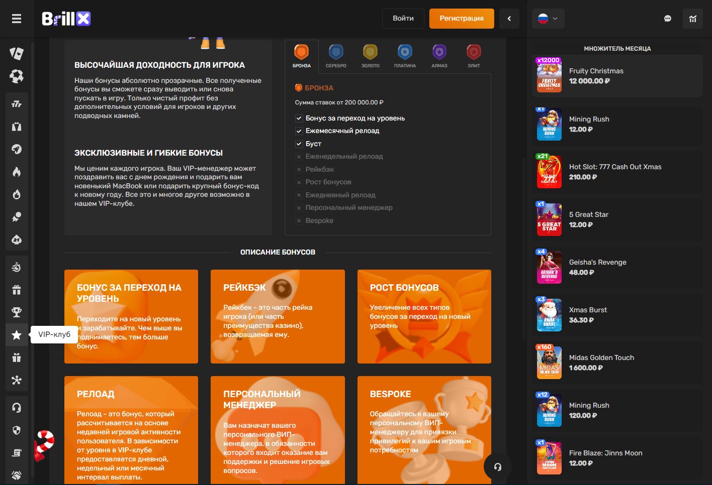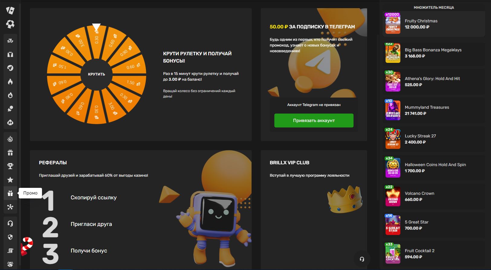 Официальный сайт Brillx Casino и его зеркало предлагают своим пользователям различные бонусы и акции, которые делают игру еще более интересной и выгодной. Новые игроки могут получить приветственный бонус, а регулярные игроки могут участвовать в различных розыгрышах и турнирах с ценными призами.